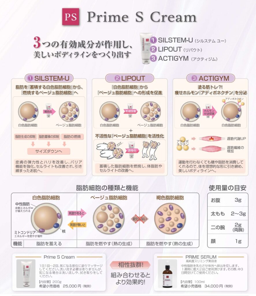 さらにご自宅では、脂肪燃焼&引き締めクリーム(プライムSクリーム)を使用。